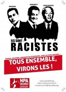 Sarkozy et sa politique raciste, sécuritaire et antisociale… LUTTONS POUR LES DEGAGER !NPA Jeunes7/10/2010Autocollants, Matériel 2010 – Autoc Sarkozy et sa politique racisteTélécharger Article précédent Besson, Sarkozy, Hortefeux, ils sont racistes, TOUS ENSEMBLE VIRONS LES ! Article suivant Ce système ne nous offre aucun avenir... RENVERSONS LE CAPITALISME !
